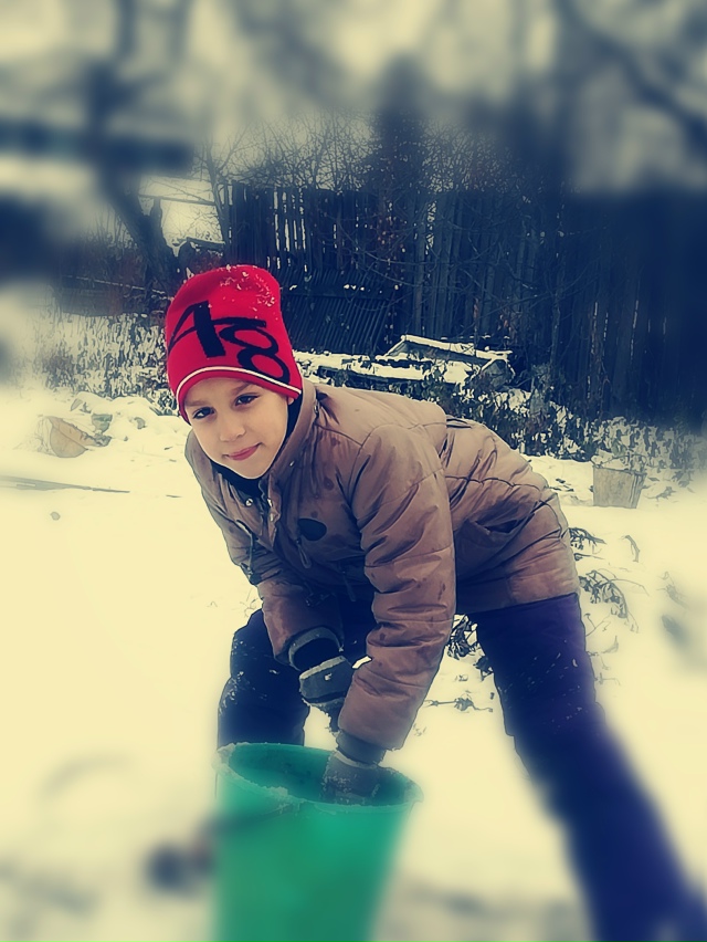 Артём стоит в интересной позе, тянется к ведру со снегом. Фото с новой страницы ВК косовой. Пост от 24 ноября 2018