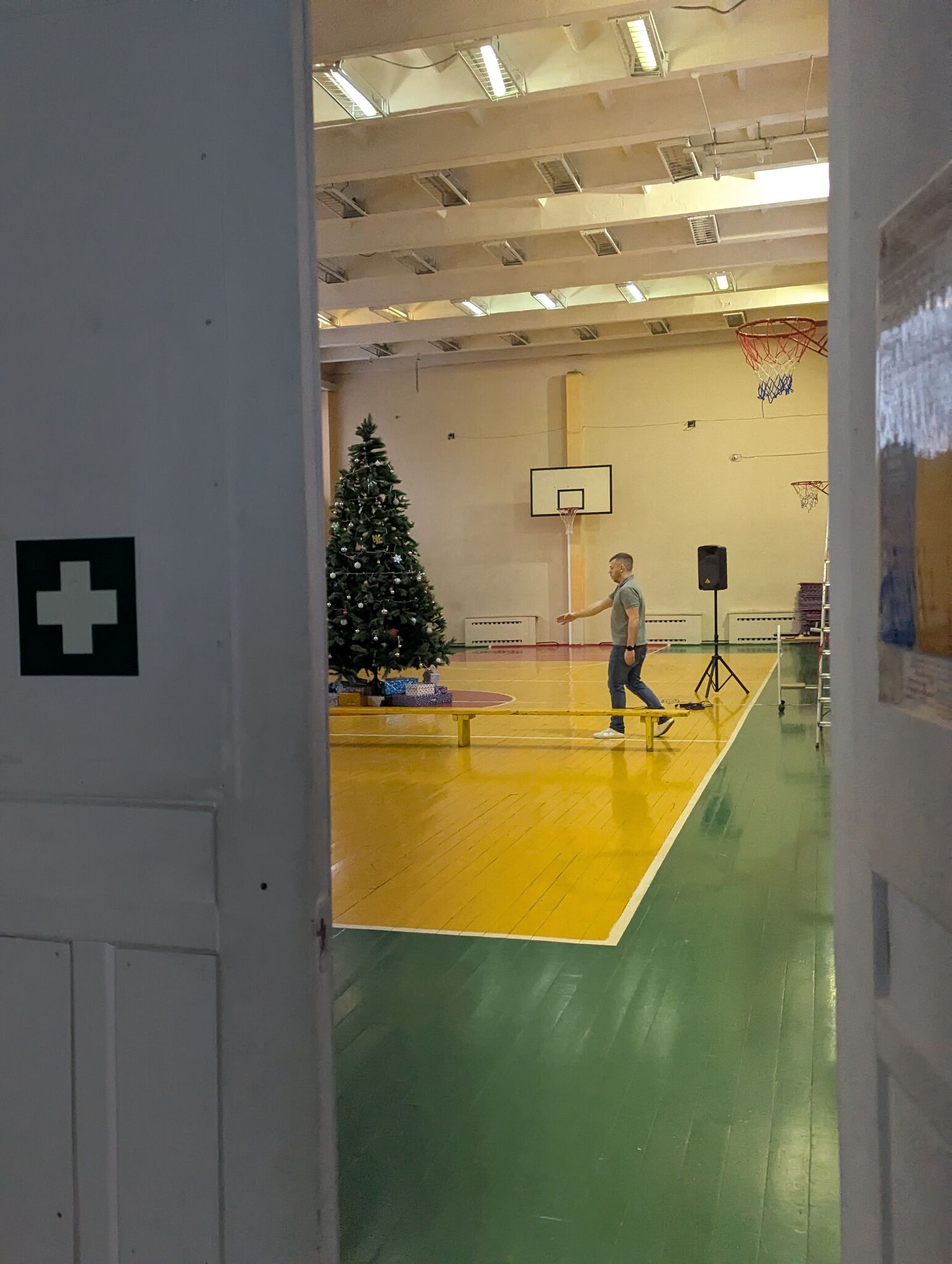 Большой спортзал, видно диджея