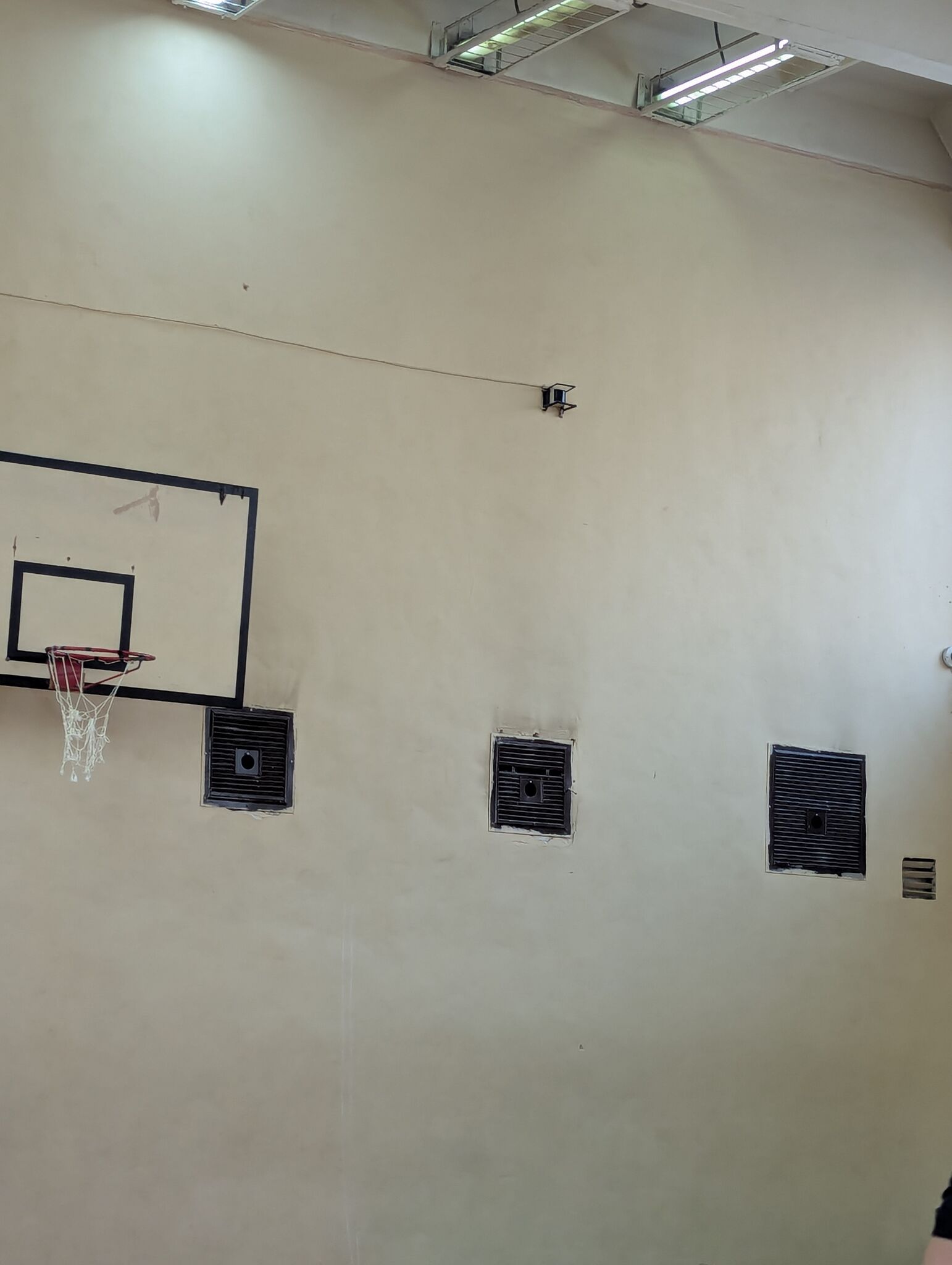 Решетки в спортзале. В них выходит вытяжки из моторного помещения
